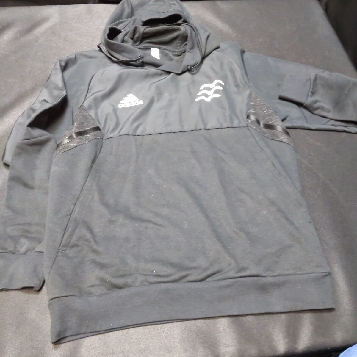 - 横浜F・マリノス 移動着ウェア ブラック パーカー adidas ジャージパーカー胸元〜肘 撥水加工生地 Lサイズ 814
