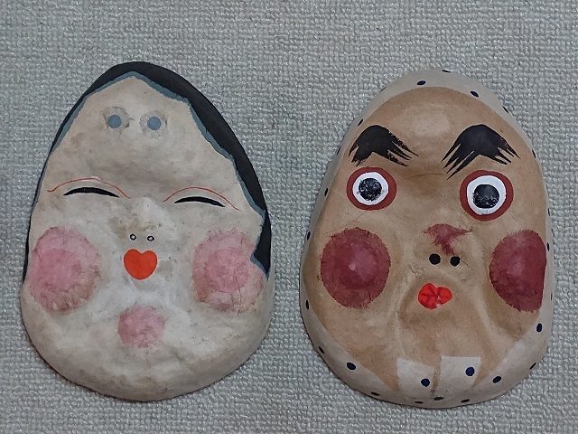 - おかめ・ひょっとこ ひょっとこ・おかめ お面 和装 2種類 アンティーク コレクション 雑貨 昭和レトロ 日本文化