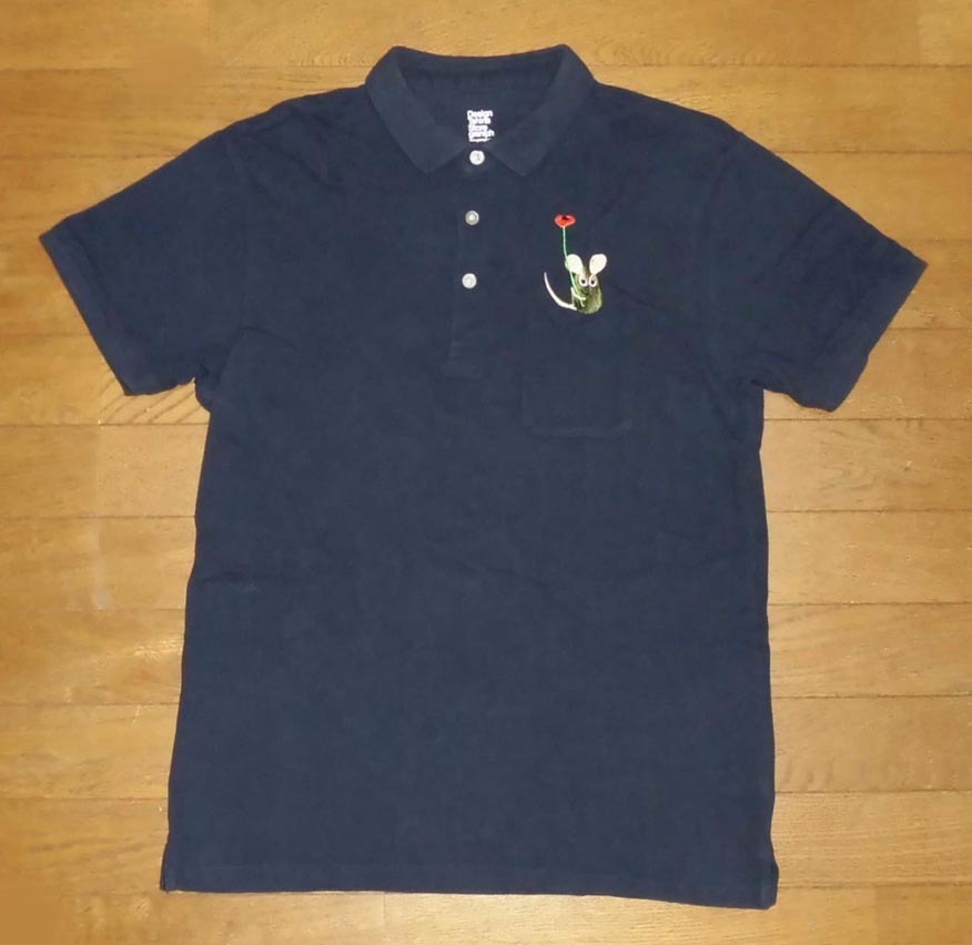 > graniph グラニフ ポロシャツ レオ・レオニズ・フレンズ フレデリック 半袖 コットン 鹿の子 胸ポケ付 刺繍デザイン NVY M USED 美品