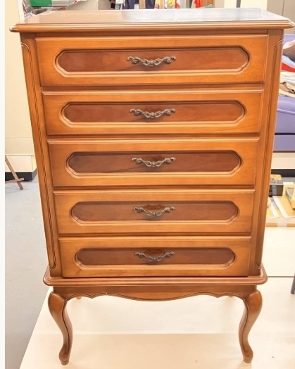 > AY □ 猫脚5段チェスト □ カリモク家具 引き出し 物入れ ビンテージ アンティーク 茶系 傷 汚れあり 現状品 長期保管品 中古