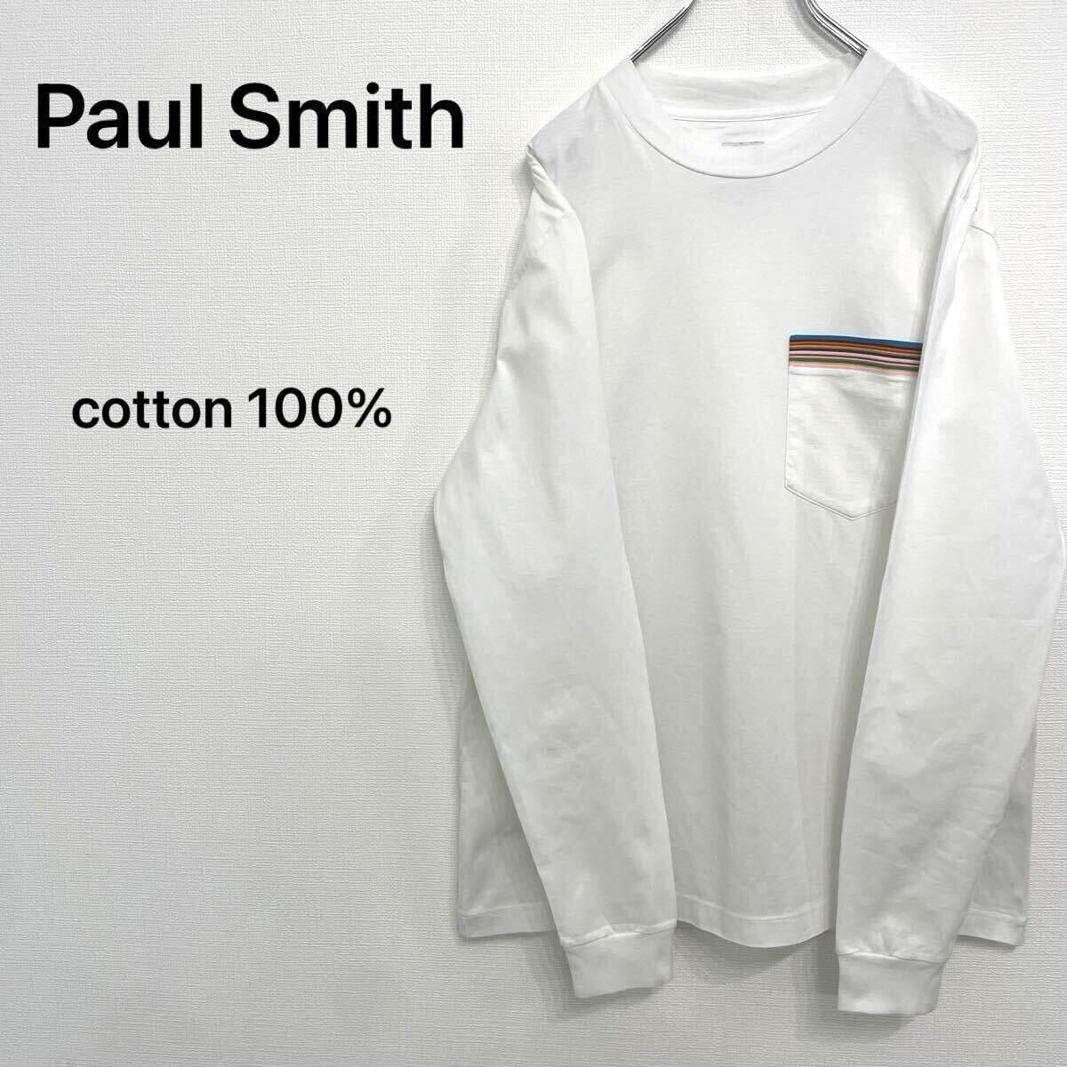 - 【747】 Paul Smith ポールスミス メンズM 長袖Tシャツ ホワイト シグネチャーストライプ ポケット付き ロンT コットン100% 白Tシャツ