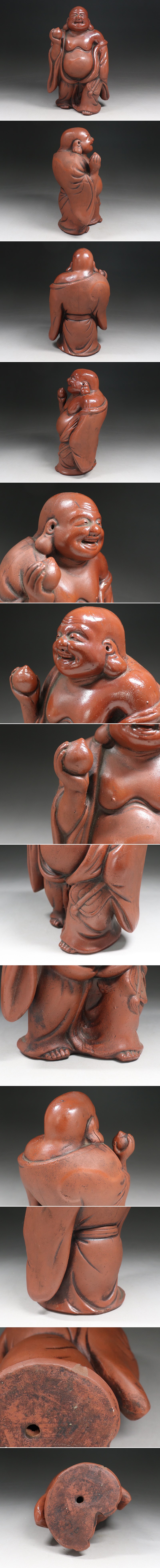 - ■古備前■布袋尊像・立像・置物・布袋様・高さ約18㌢・床置・七福神・縁起物・f8150h