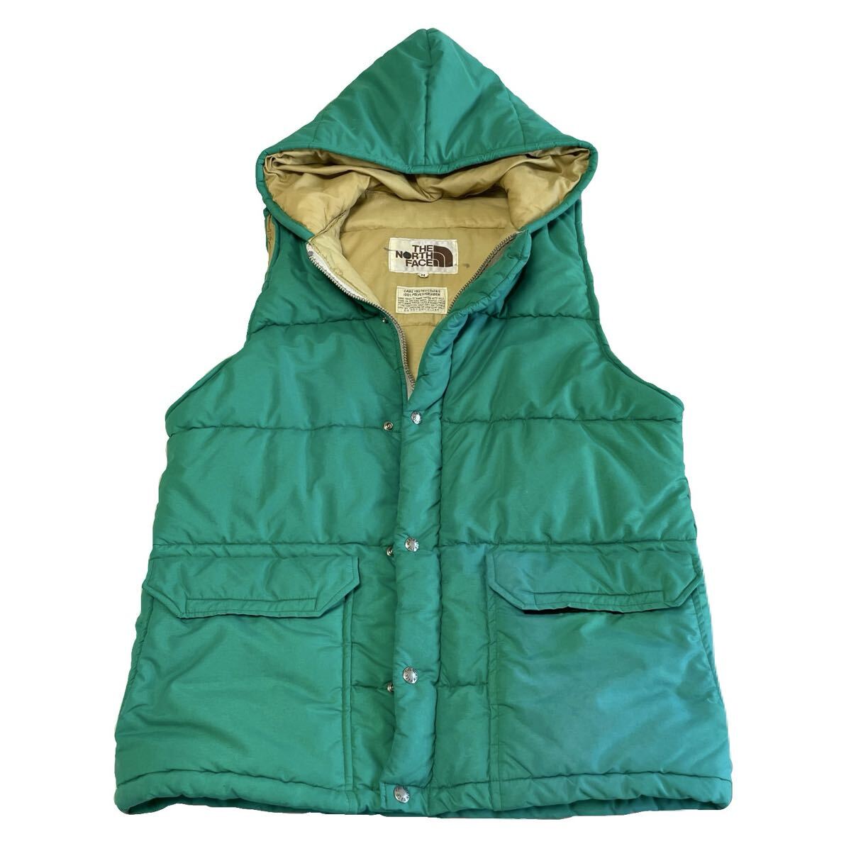 - 70s 80s ノースフェイス ノース 茶タグ ダウンジャケット ダウンベスト ベスト フード 緑 ヴィンテージ ビンテージ USA製 アメリカ ヌプシ