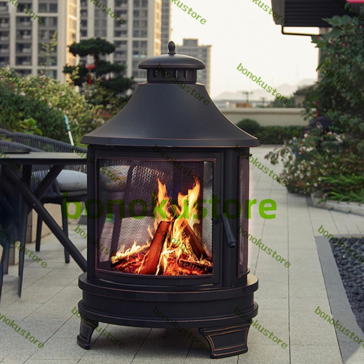 - 薪ストーブ 1台2役 ファイヤーピット 煙突付き キャンプ 薪暖炉 ロケットストーブ ウード暖炉 二次燃 焚き火台 アウトドア75X75X124CM