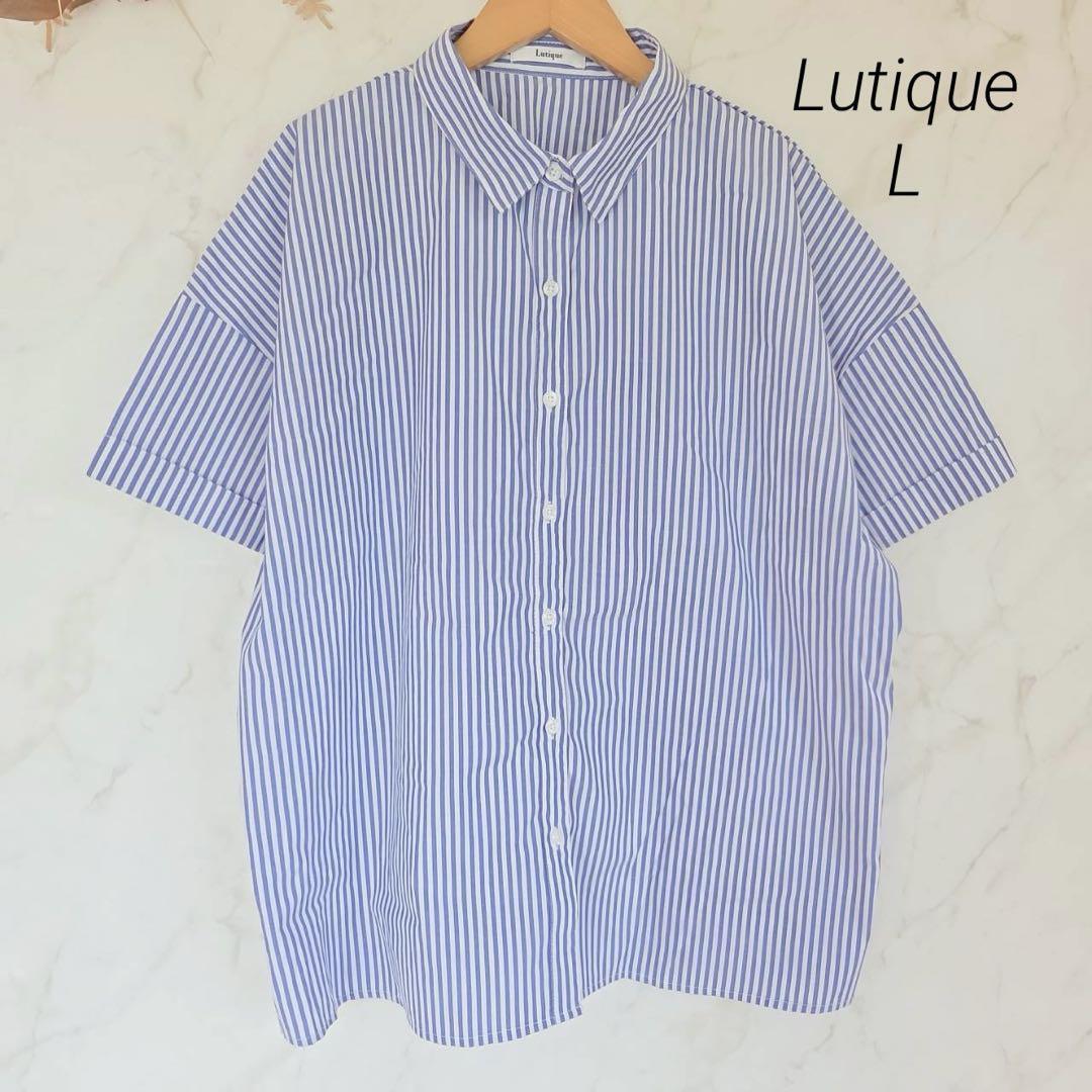 - 美品ルティーク Lutique 半袖シャツ L ストライプ 青×白 ゆったり