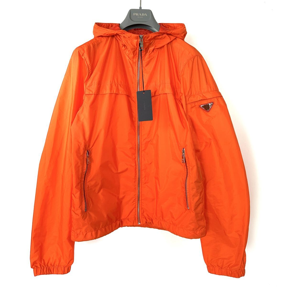 - 超希少◇PRADA プラダ 24SS ロゴプレート ナイロンジャケット トライアングルロゴ ブルゾン オレンジ 46 メンズ ユニセックス