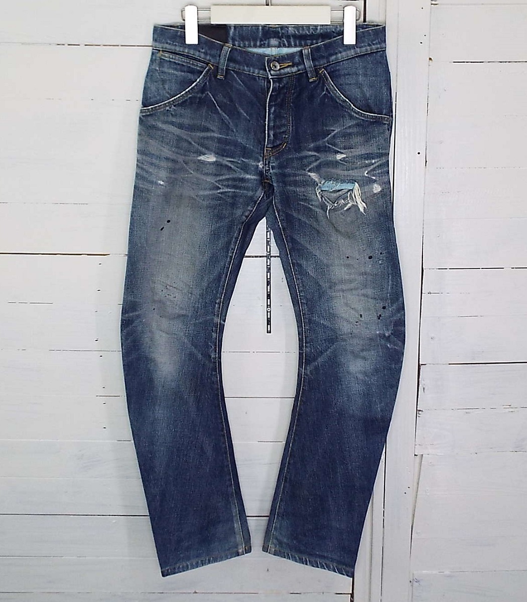 > T1978〇ATTACHMENT(アタッチメント)デニムパンツ ジーンズ ペイント加工 ダメージ加工 インディゴ Sサイズ