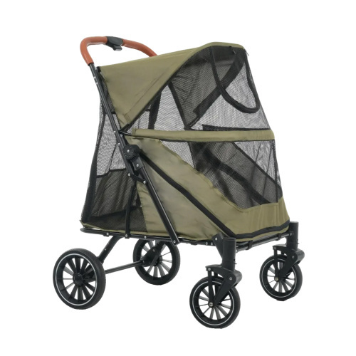 - ペットカート 耐荷重50㎏ 大型犬対応 前後ドア 乗りやすい 折りたたみ 多頭 ワンタッチ折り畳み 中型犬 小型犬 猫 【オリーブグリーン】