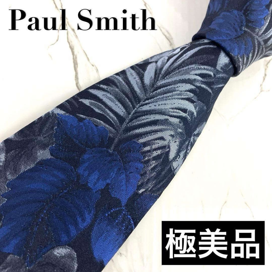 - 極美品 Paul Smith ポールスミス ネクタイ ボタニカル柄 ジャガード 光沢 ブラック 肉厚