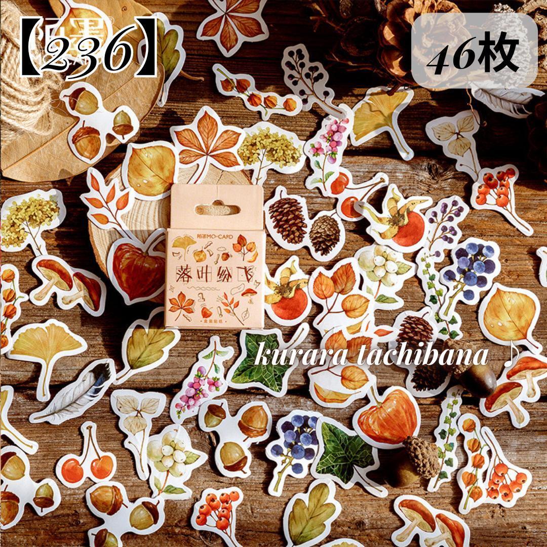> 【236】フレークシール 秋 ステッカー コラージュ素材 植物 紅葉 季節 ジャンクジャーナル スクラップブッキング アルバム デコ 46枚