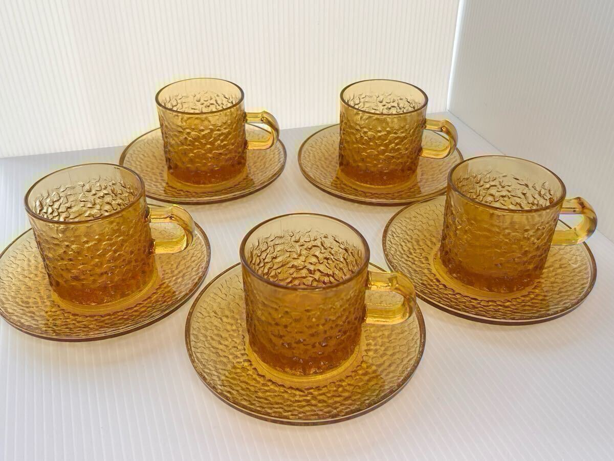 - 昭和レトロ アンバー ティーセット ロイヤルハーモニー カップ&ソーサー 5客セット 洋食器 ROYAL HARMONY HS-86 飴色 琥珀色〈K-14〉