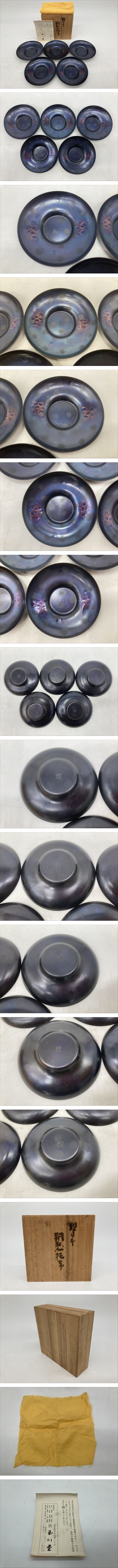 - 京都6★ 玉川堂 鎚目打 銅老托子 共箱 布 栞 5枚 茶道具