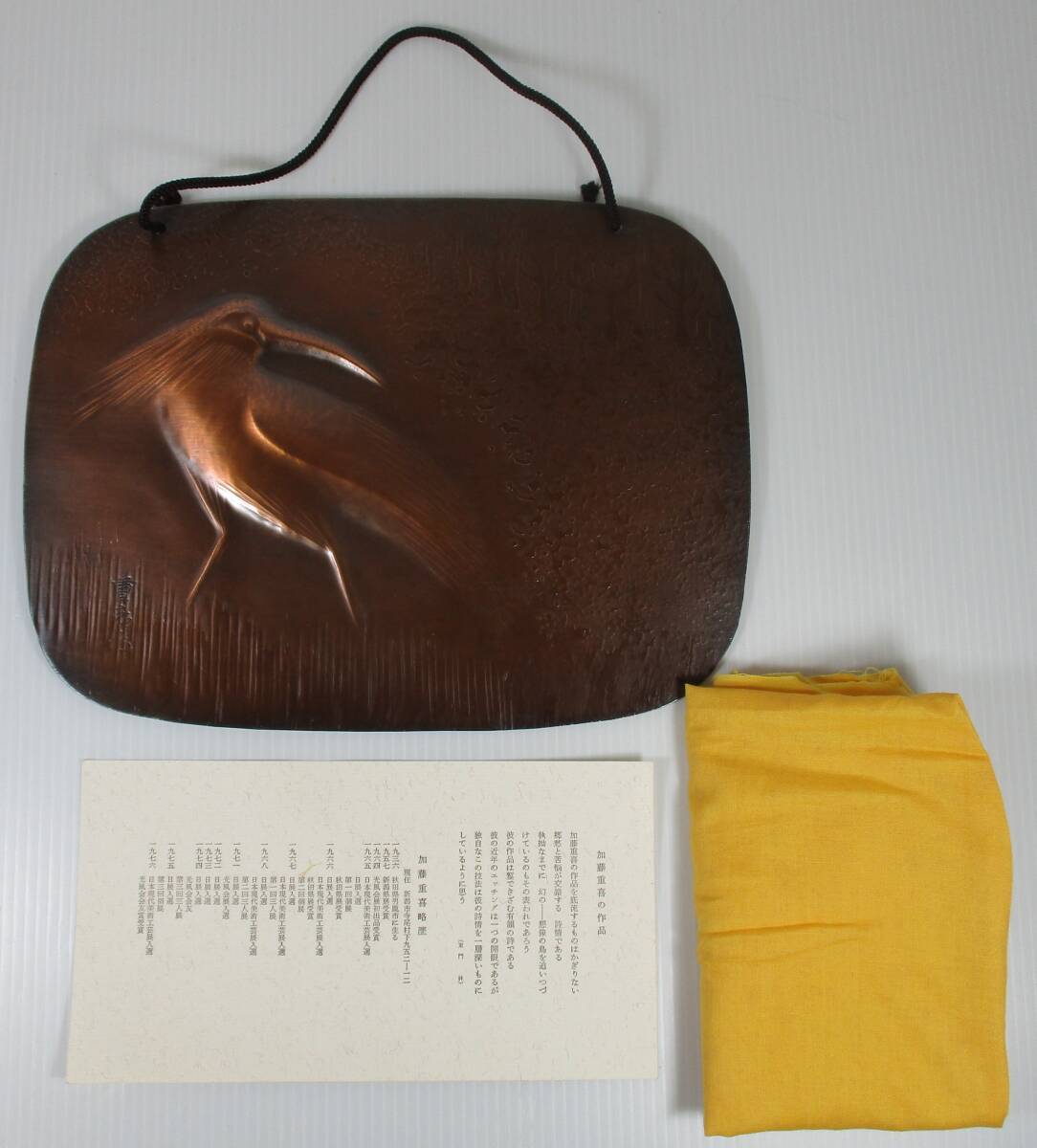 - E-48 真作 加藤重喜 作 銅板打ち出し画 幻の想像の鳥