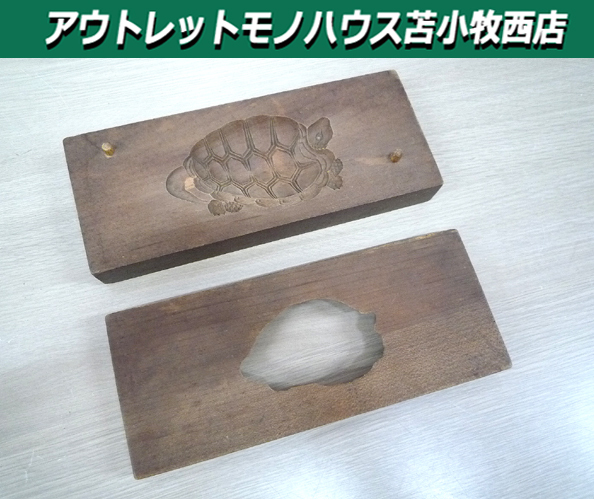 レトロ 欠け有り 木製和菓子型 木型 木製型 菓子型 押型 亀 アンティーク オブジェ コレクション 中古 苫小牧西店