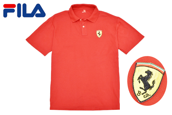 > Y-9824★送料無料★FILA フィラ製 フェラーリ★レッド赤色 フェラーリロゴ刺繍 鹿の子 半袖 ポロシャツ L