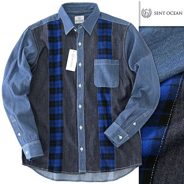 > 新品 セントオーシャン クレイジー フランネル デニム シャツ M 青 紺 黒 【AFE851_510_M】 秋冬 メンズ SENT OCEAN 長袖 ネルシャツ