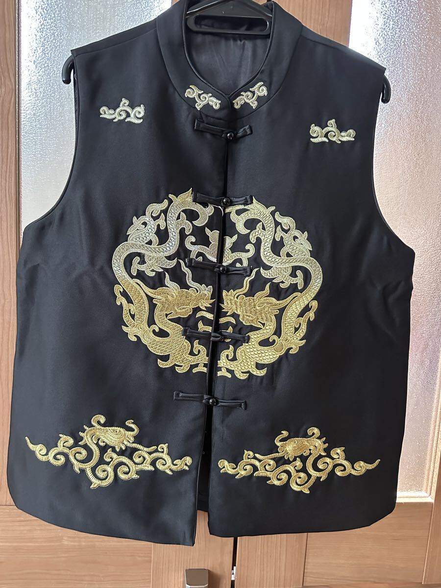 - 【新品未使用】チャイナ服 刺繍ドラゴン龍 ベスト ノースリーブ 男女兼用