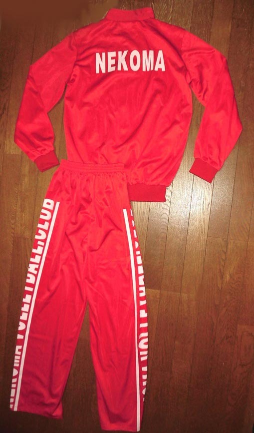 - ハイキュー!! 音駒高校 バレーボール部 ジャージ ジャケット パンツ 上下 セットアップ RED XL 使用僅 ほぼ未使用 美品/孤爪研磨黒尾鉄朗