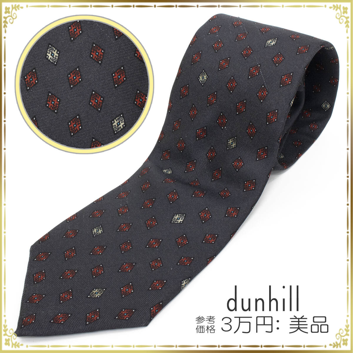 > 【全額返金保証・送料無料・美品】ダンヒルのネクタイ・正規品・スクエア 菱形総柄・ダークグレー系・綺麗・フォーマル・メンズ・衣類