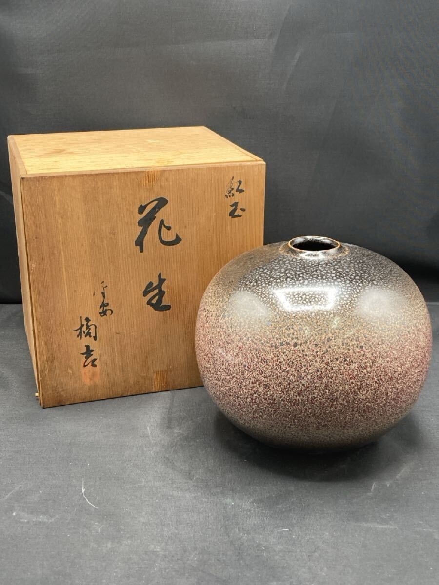 - m0916701-4 橘吉 紅玉 民芸陶器 華道 生け花 和風置物 オブジェ 壺 インテリア装飾 花器 花具 花壺 花生花瓶 花器 ビンテージ 中古品