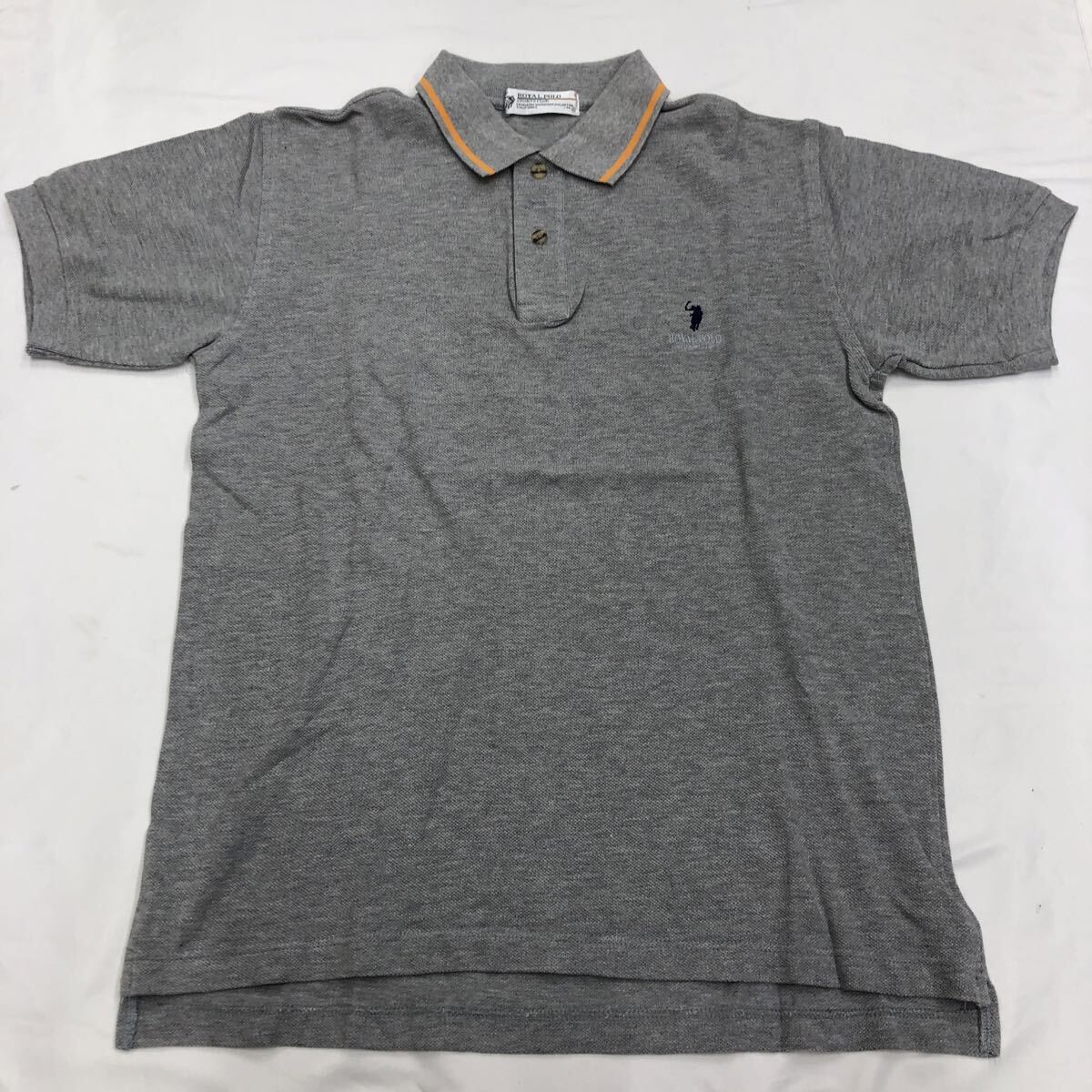 - ROYAL POLO ポロシャツ 半袖ポロシャツ 半袖 グレー Mサイズ 胸ロゴ オレンジライン