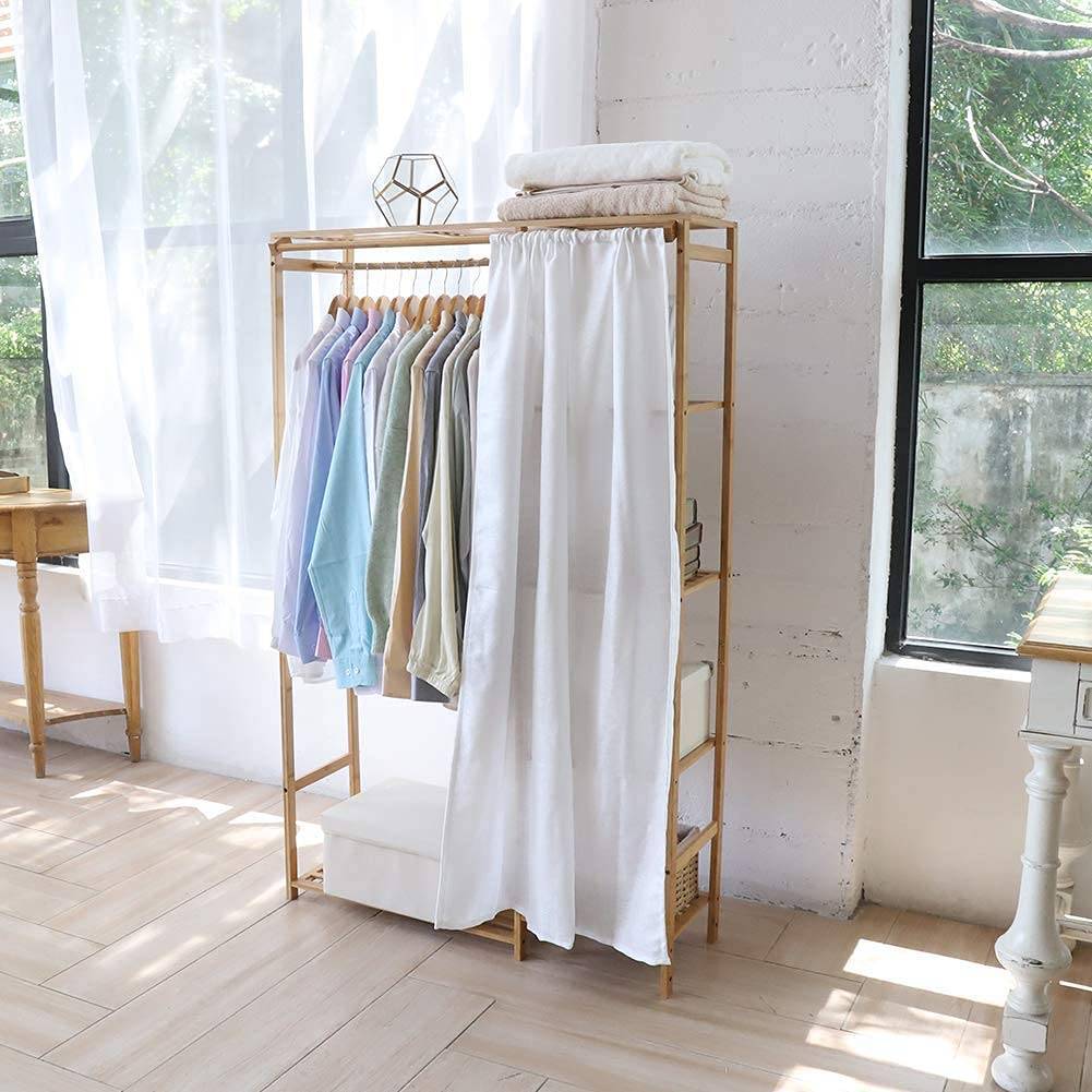 - 竹製ハンガーラック カーテン・棚付き 大容量