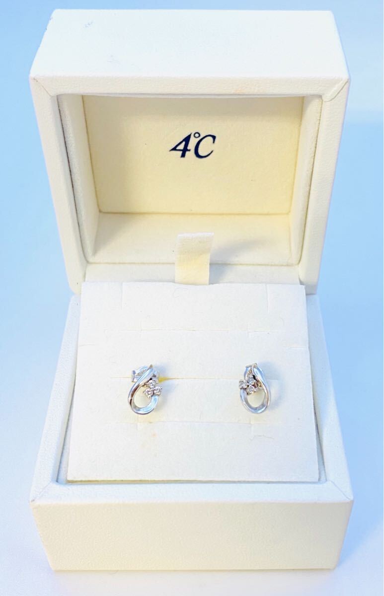 - 極美品 4℃ K10ホワイトゴールド ダイヤ ピアス BOX