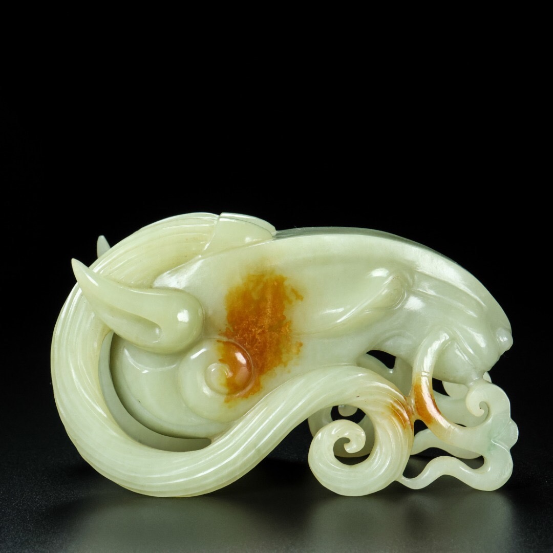 - 『清・和田玉細密彫・沁色自然・透空彫・領頭羊・根付・裝身具』極細工 置物 古賞物 中国古玩 中国古美術
