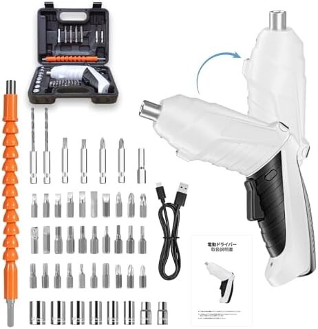 - 【送料無料】電動ドライバー 【47個部品&2種類変形】 anfei 小型 4.2V 3.5N.m 正逆転切替 電動ドリル 充電式