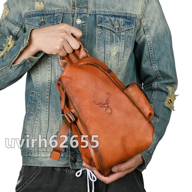 - メンズ 本革 ボディバック レザー 男性 ワンショルダーバッグ 斜め掛けバッグ 牛革 大容量 iPad対応 カジュアル 鞄 左右肩付替え コーヒー