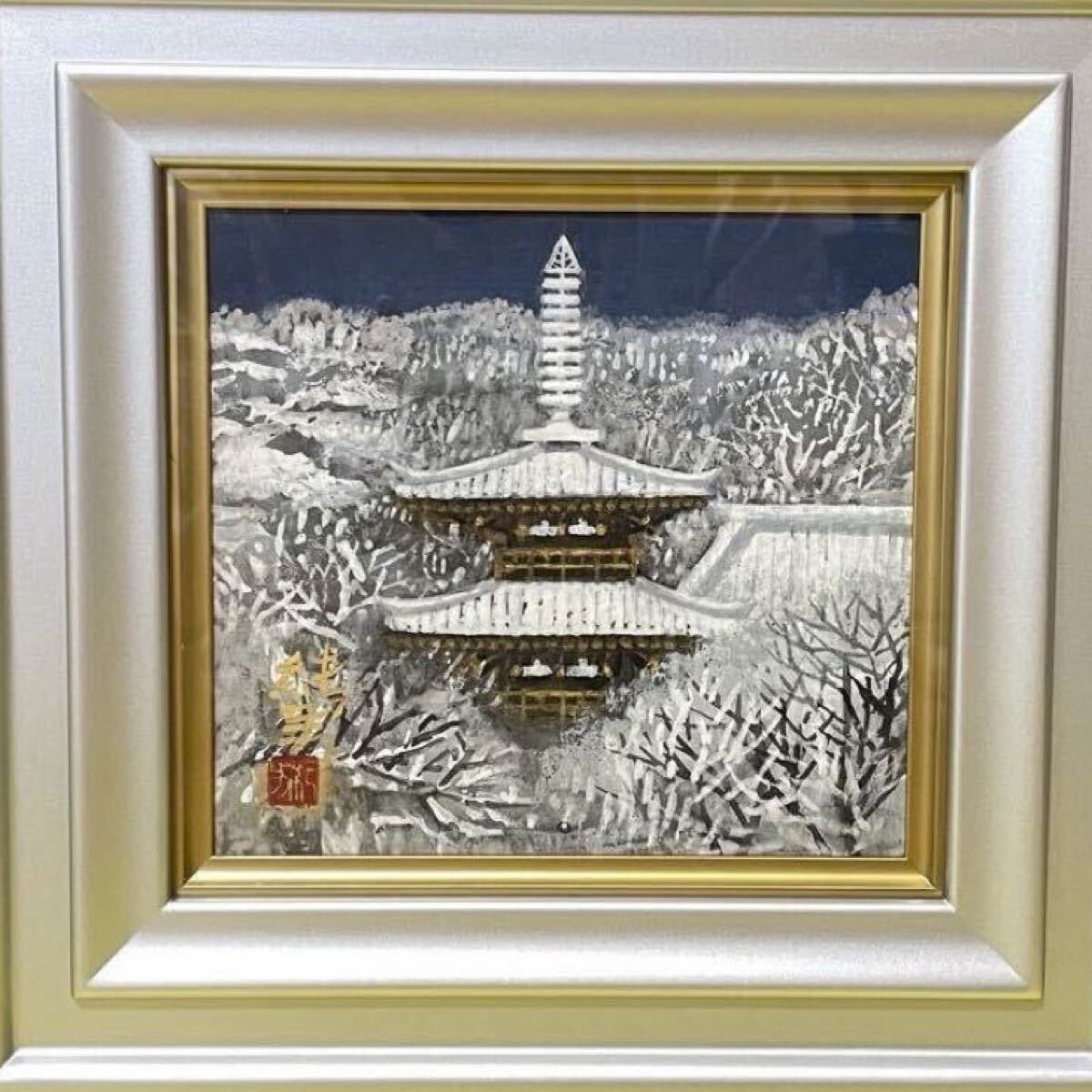 - 《真筆保証/美品》 後藤純男 『新雪大和』日本画 共シール 額装 箱付 古都大和の雪景色を格調高く描いた日本画 逸品 名画 美術品
