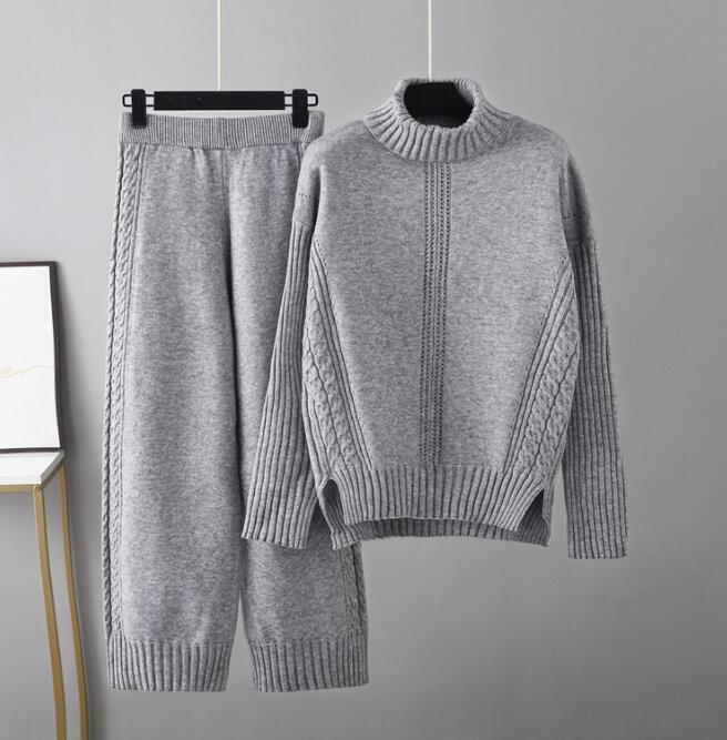 > 344 パンツスーツladiesレディース ◇ 魅惑Styleセクシー ◇ニット素材 秋冬 上質 厚手 ケーブル編み グレー