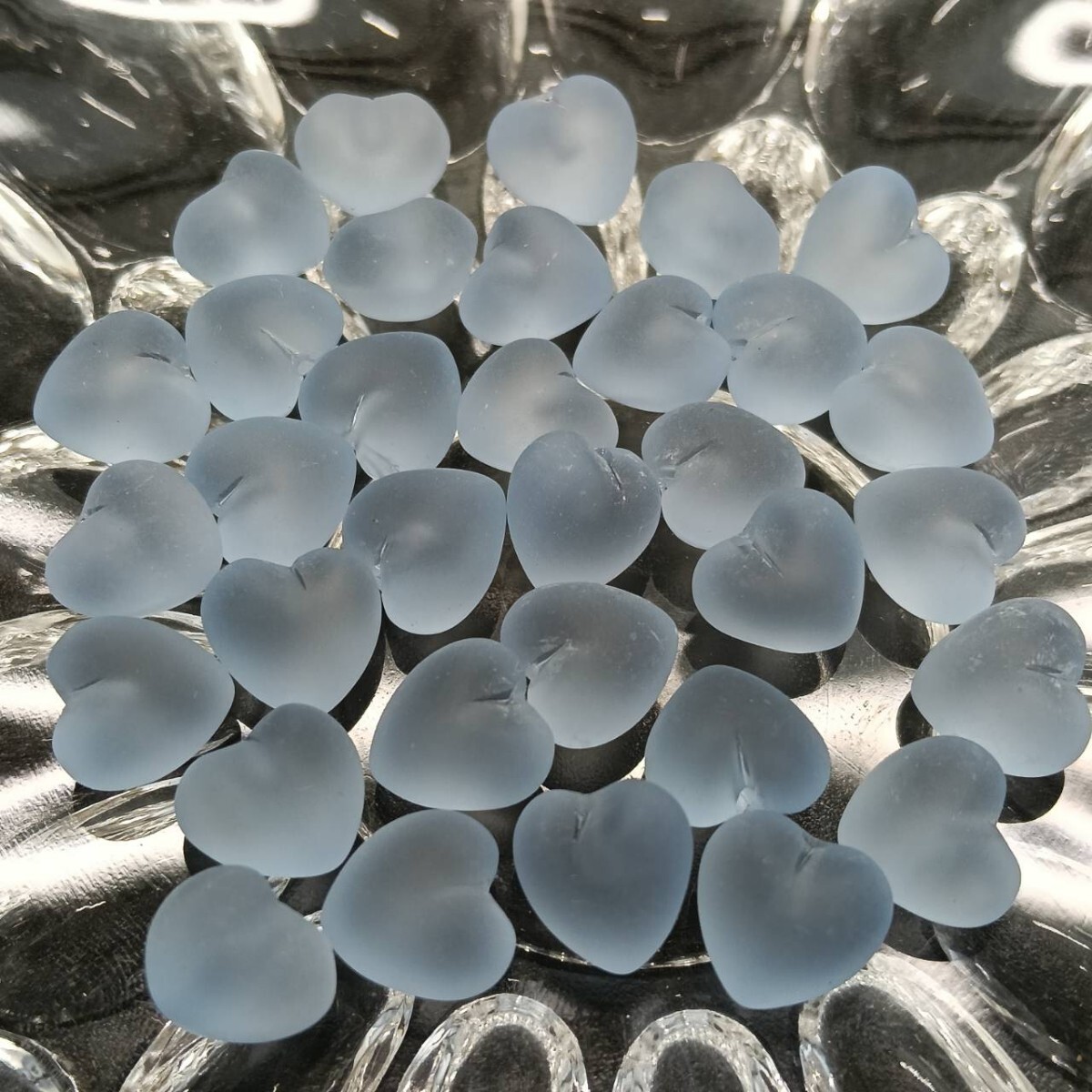- L300☆未使用 大量 片穴 チェコ ガラスビーズ 33g 10×10mm ハート 水色 ブルー 大粒 ヴィンテージ パーツ アクセサリー ネックレス B-354