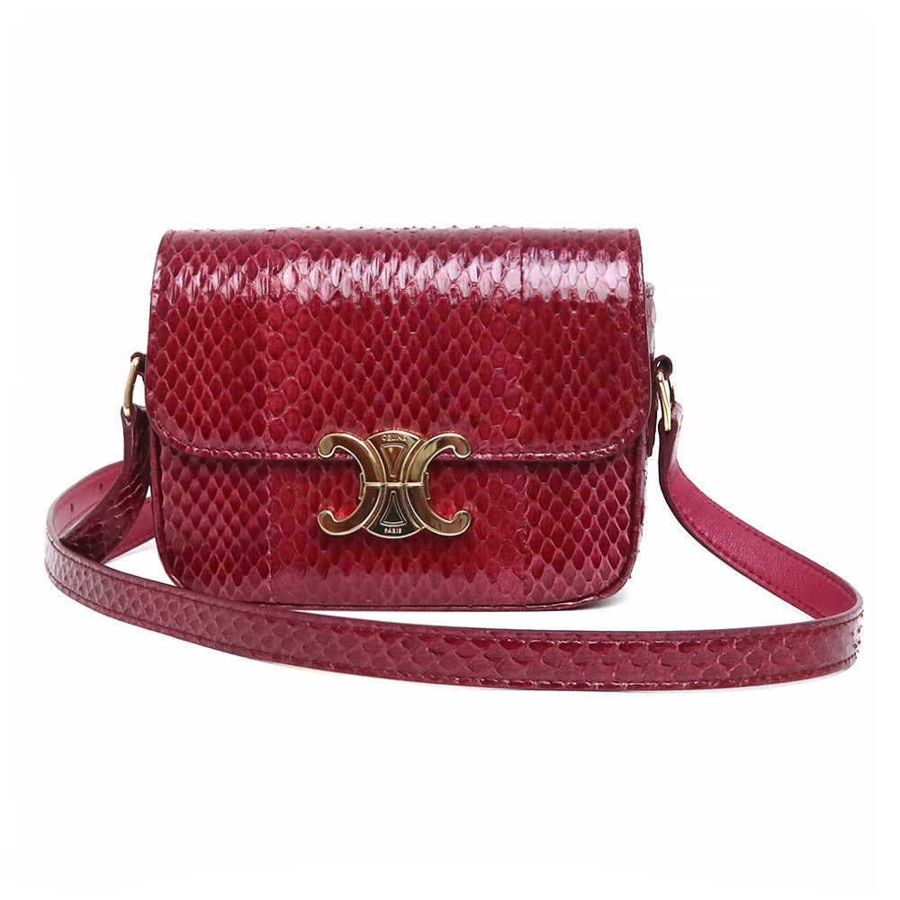 - (新品・未使用品)セリーヌ CELINE トリオンフ ウィップ スモール ショルダーバッグ パイソン エキゾチックレザー ワインレッド 赤