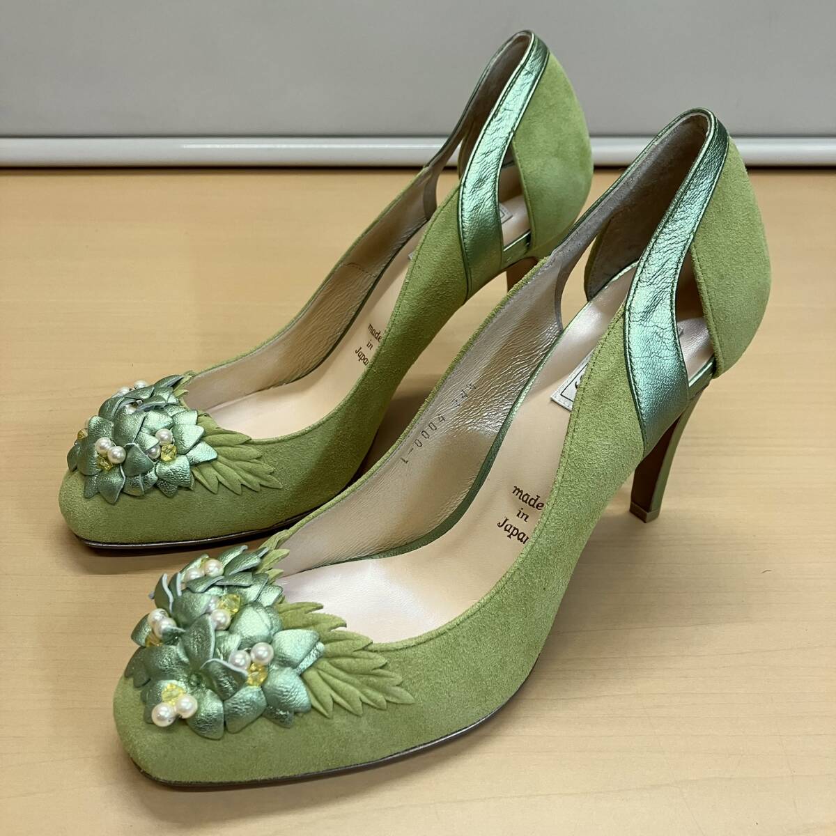 - Limit till 2359 ラウンドトゥフラワーモチーフピンヒールパンプス(グリーン系)24.5