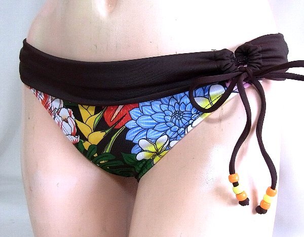 - ★☆LOCO 折り返し付き花柄入りブラウンビキニ水着ショーツ☆★
