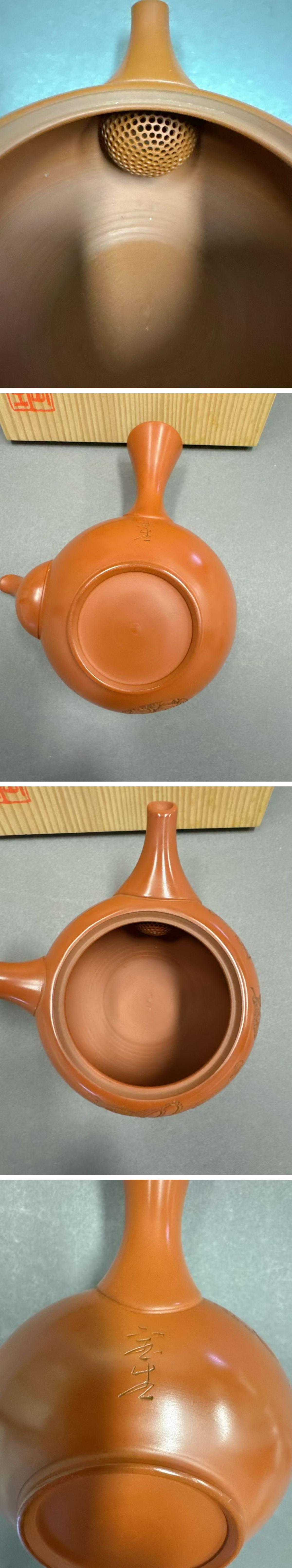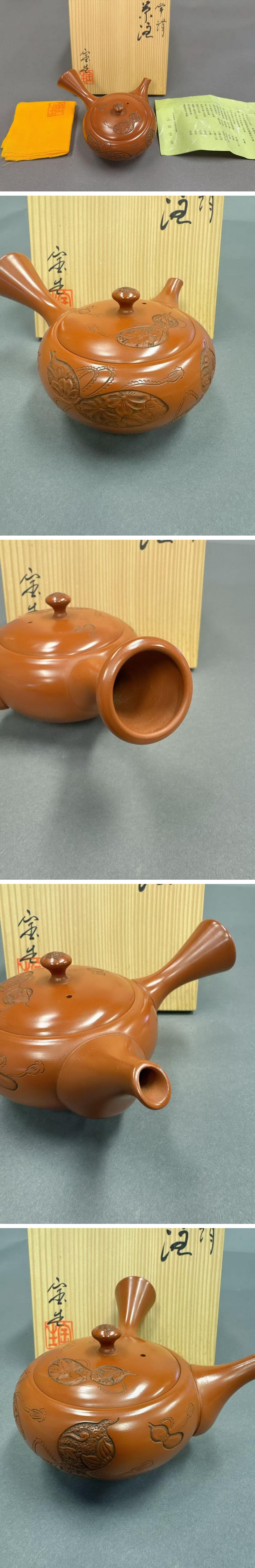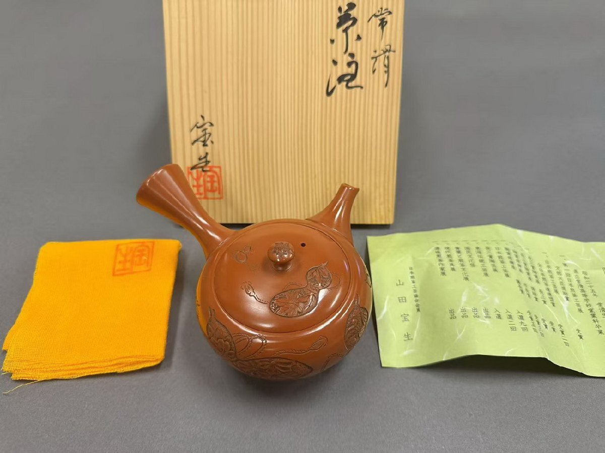 - 【華】時代舊藏 常滑焼 名匠「山田宝生」朱泥 瓢箪紋茶壷 茶煎道具 共箱 本物保証 時代物 古美術 骨董品D25073007-PVQ
