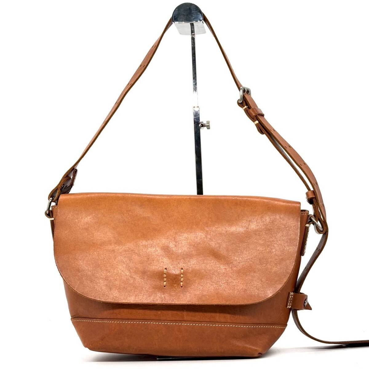 - 1円~ MANO FECE マノフェス H1203 ショルダーバッグ メッセンジャーバッグ 手縫い 本革 ブラウン