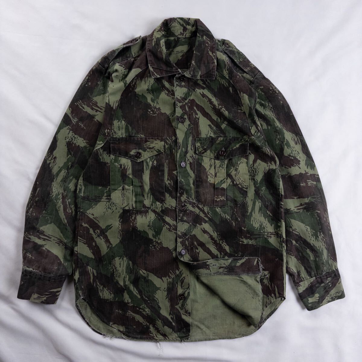 - Euro Vintage Unknown コットン ヘリンボーン 迷彩 カモフラ ミリタリー ウッドランド フレック ワーク ユーティリティ フィールドシャツ