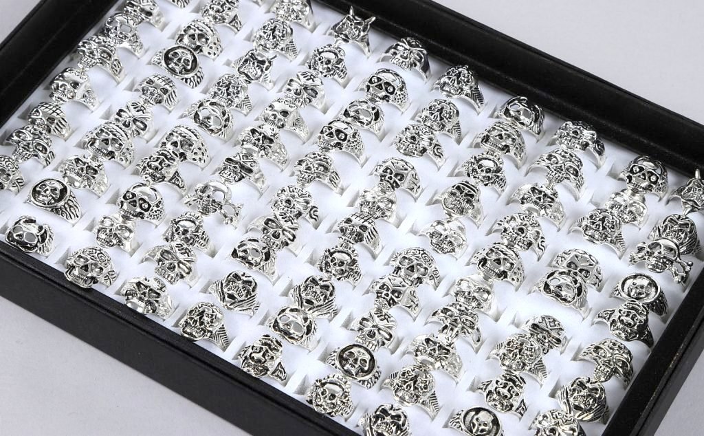 - スカルリング★おまとめて大量100個 メンズファッションリング 指輪 アクセサリー メタルリング 髑髏 骸骨 まとめ売り 男性 MSY-Nb17