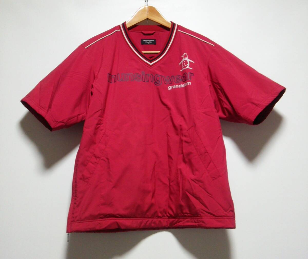 - 美品 マンシングウェア 秋冬 半袖中綿ジャケット 半袖ブルゾン ダウンシャツ シャツブルゾン プルオーバー 中綿ブルゾン 紫 メンズM
