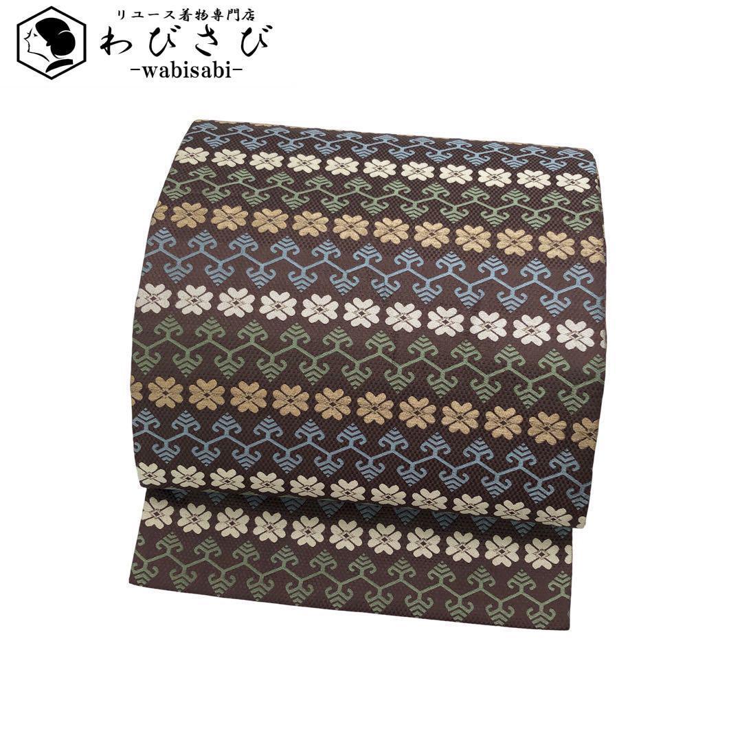 > 名古屋帯 花草模様 金糸 暁鼠色 O-4471 着物 きもの kimono 和服 和装 中古 リサイクル着物 【送料無料】