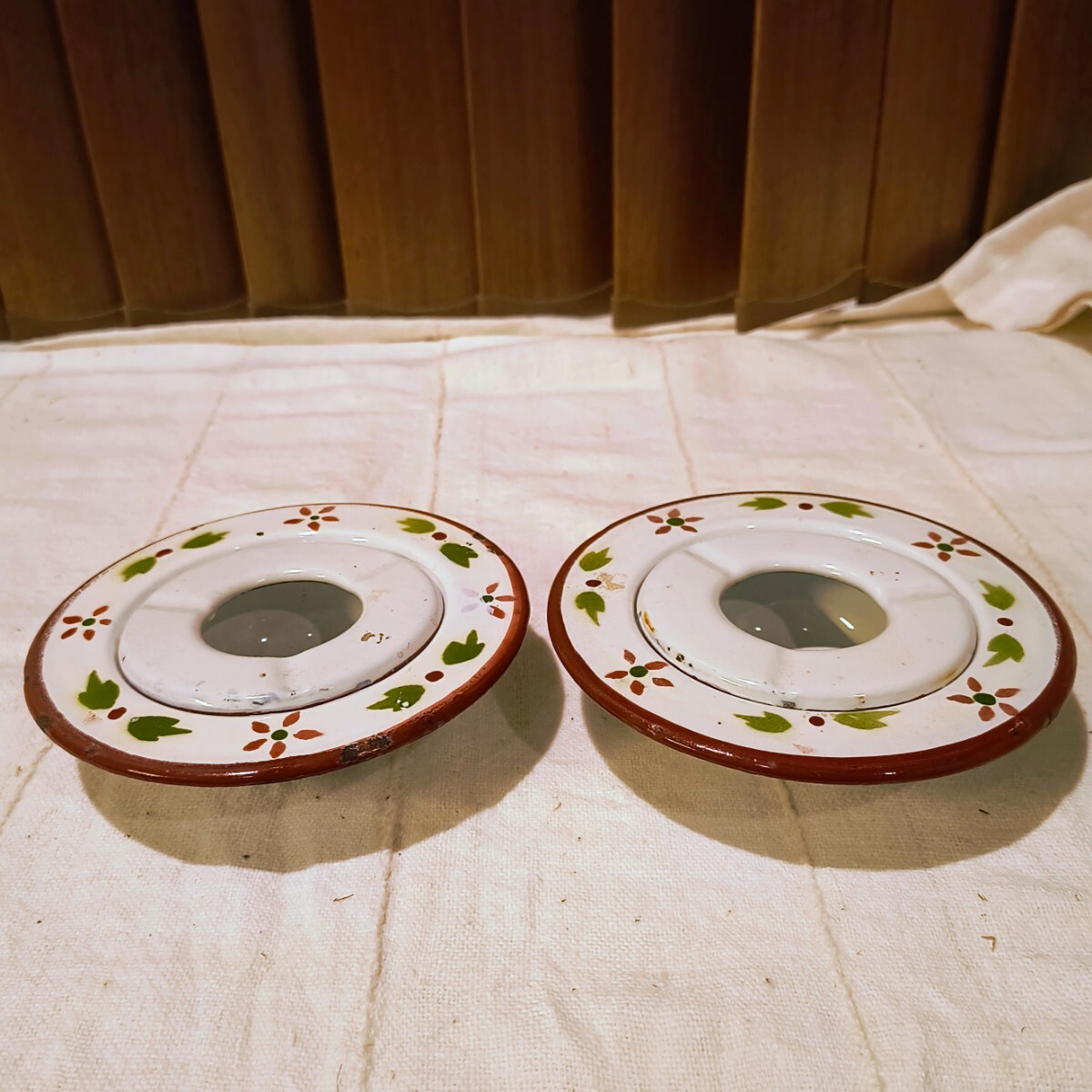 - 昭和レトロ ホーロー 灰皿 柊 2個組 検) 古道具 ビンテージ 琺瑯 クリスマス 灰落し