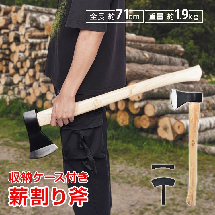 - 送料無料 薪割り斧 手斧 オノ ハンドアックス キャンプ アウトドア 大型薪割り 丸太割り 焚き火 バーベキュー 登山 木製 オーク DIY od653