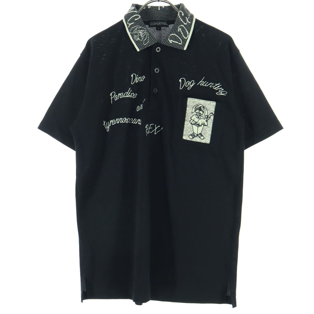 DOG HUNTING ドッグハンティング キャラクター刺繍 半袖 襟デザイン ポロシャツ S ブラック メンズ