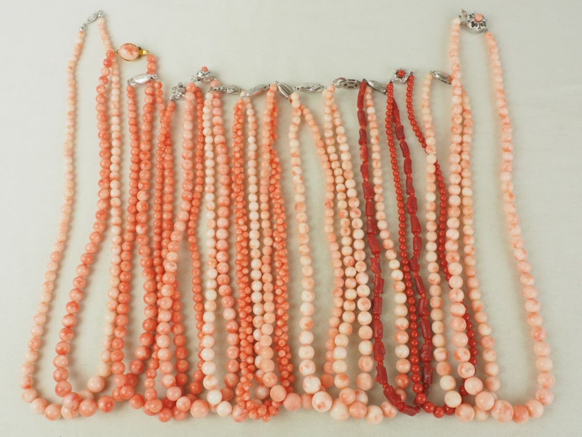 > 珊瑚 ネックレス まとめて 約360g デザイン 色々 赤 桃 サンゴ SILVER コーラル シルバー アクセサリー