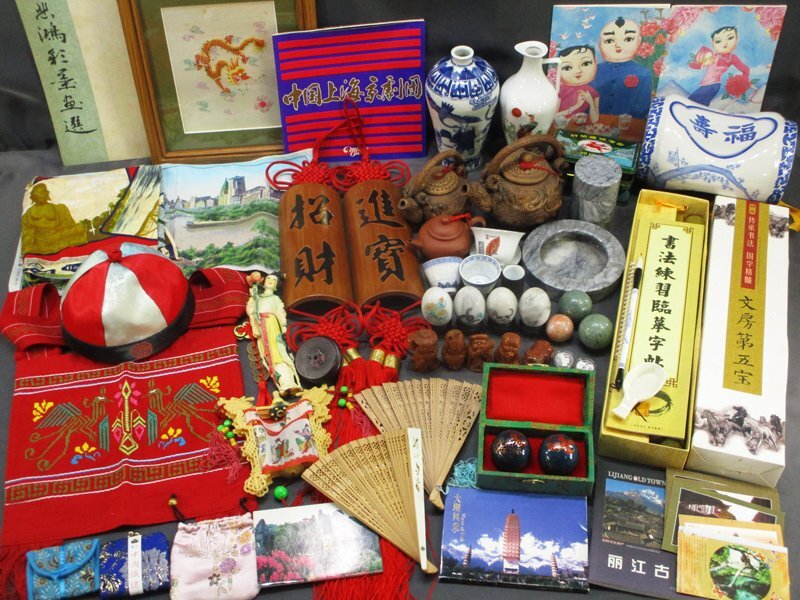- 5483 中国関連品 まとめて/景徳鎮 乾隆年製 中国宜興 紫砂 茶壺 壷 水注 蛍焼 煎茶碗 陶枕 敷物 除悲鴻 中国書画 等 中国美術 唐物 古玩