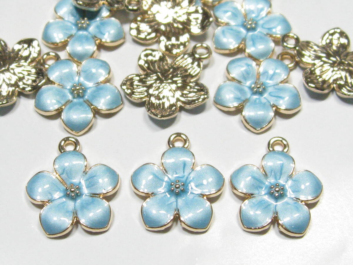 - 五弁花 フラワー 花 水色 チャーム パーツ 20個セット!