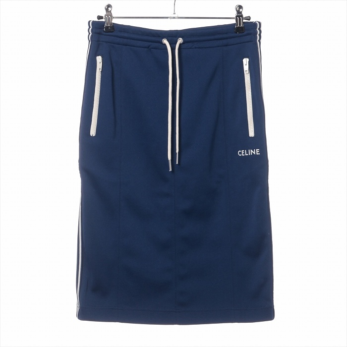 - セリーヌ (CELINE) ポリエステル サイドラインスカート XS 2Z176121O ネイビー ウェア(新品同様)中古