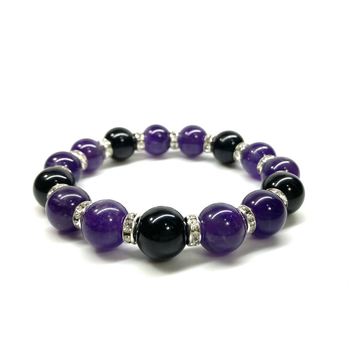 - オニキス&アメジスト パワーストーン ブレスレット 天然石ブレス (シルバー) 12mm 金運 仕事運 メンズ・レディース 男性 女性